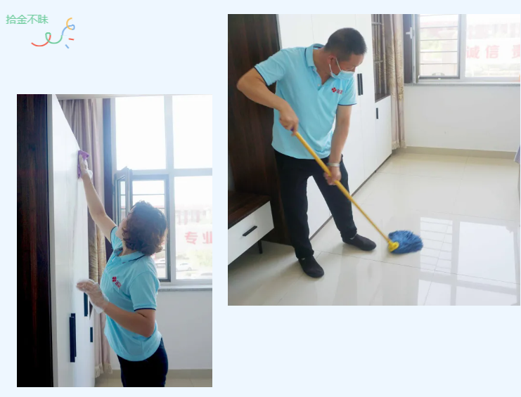 △烏蘭美康養(yǎng)院的生活助理團(tuán)隊(duì)正在為李恩國(guó)爺爺打掃房間衛(wèi)生
